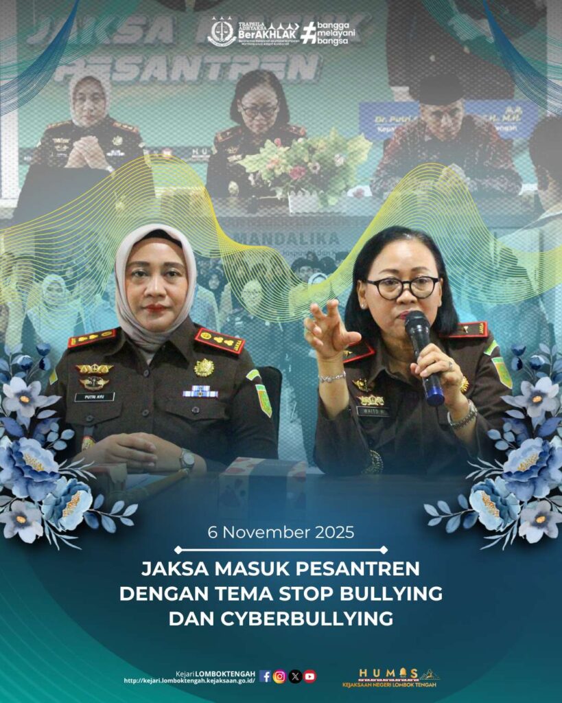 Pada hari Kamis tanggal 06 November 2025 Kejaksaan Negeri Lombok Tengah kembali menggelar kegiatan Jaksa Masuk Pesantren (JMP) dengan tema “Stop Bullying dan Cyberbullying pada Siswa-Siswi Sekolah/Pesantren”.