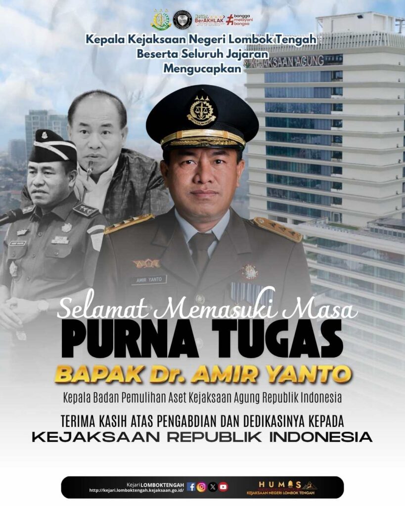 Kepala Kejaksaan Negeri Lombok Tengah Mengucapkan Selamat Memasuki Masa Purna Tugas Bapak Dr. Amir Yanto (Kepala Badan Pemulihan Aset Kejaksaan Agung Republik Indonesia)