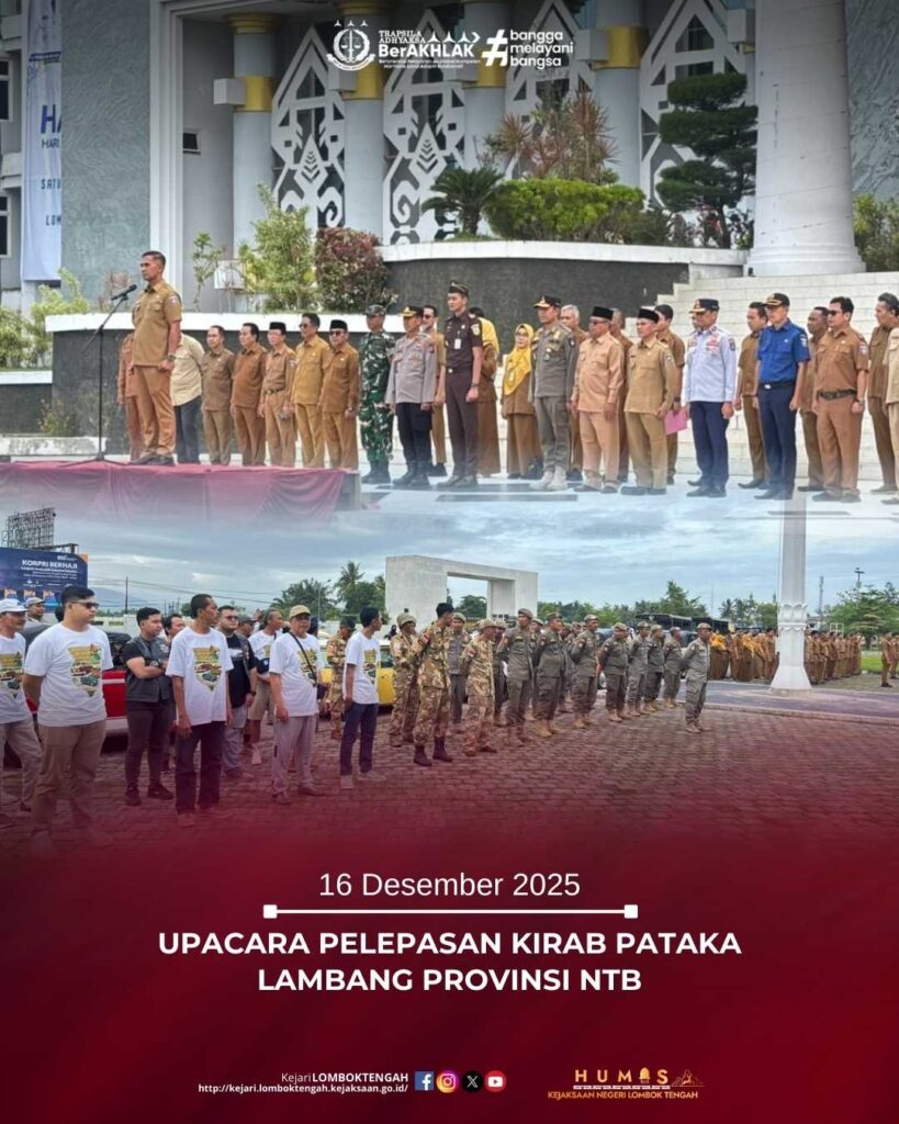 Pada hari Selasa tanggal 16 Desember 2025, bertempat di Lapangan Upacara Kantor Bupati Lombok Tengah, Kepala Kejaksaan Negeri Lombok Tengah diwakili Kasubsi II Bidang Intelijen, Sofyan Indra Siswono, S.H., telah mengikuti Upacara Pelepasan Kirab Pataka Lambang Provinsi NTB, yang dipimpin oleh Sekretaris Daerah Kabupaten Lombok Tengah (H. Lalu Firman Wijaya, ST., MT).